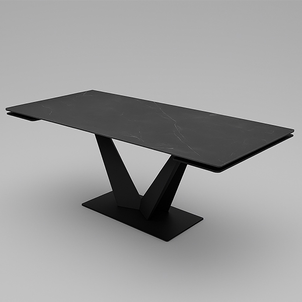 ANNIE extendable table in black matt sintered stone ceramic and matt black base
