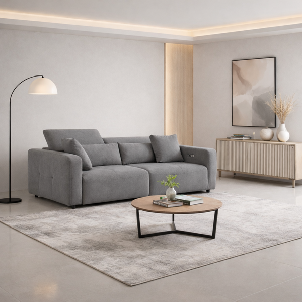 BARBARA 3SEATER SOFA WITH ELECTRIC RECLINERS IN GRAY TEFLON FABRIC