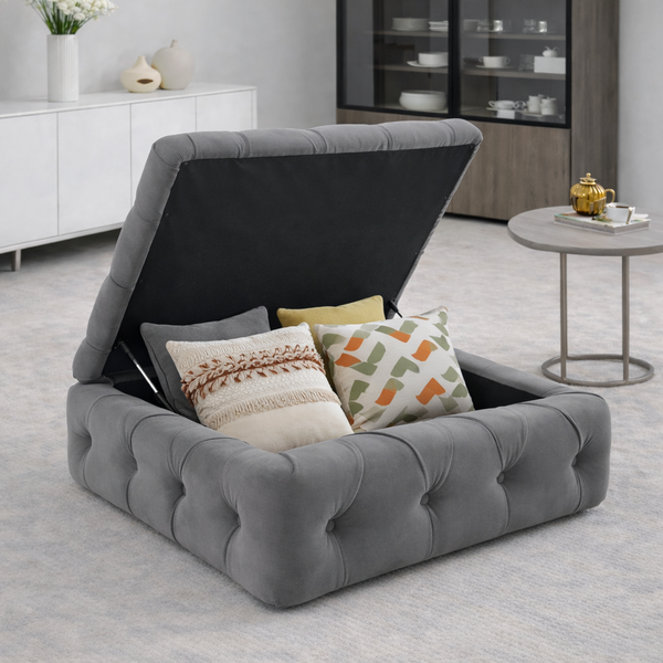 BERTA footstool with storage in gray teflon fabric
