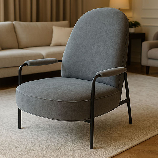BETTY ARMCHAIR IN GRAY TEFLON FABRIC AND BLACK MATT BASE