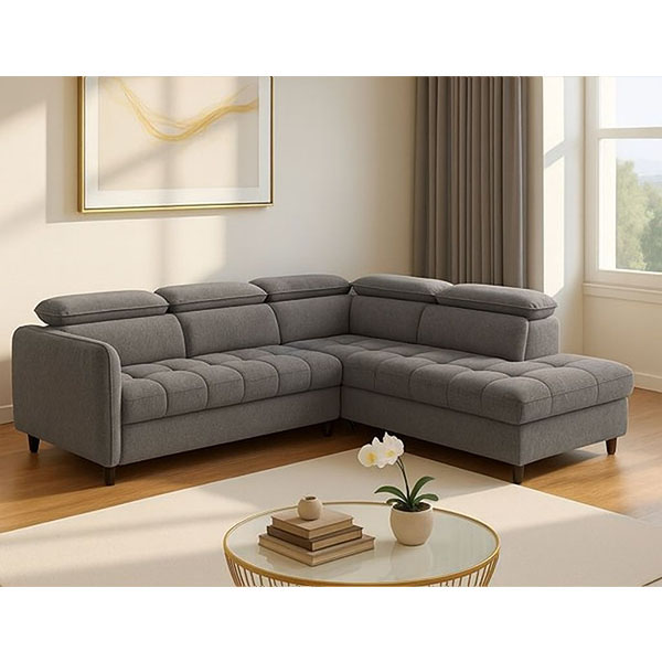BRENDA CORNER RIGHT SOFABED IN GRAY TEFLON FABRIC