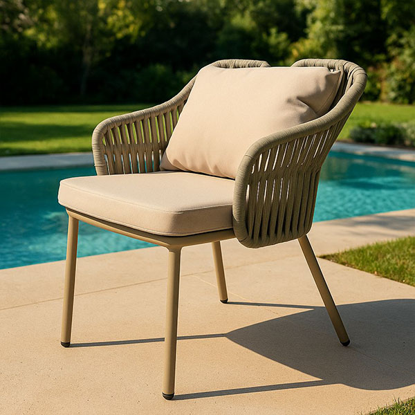 BUTTERFLY CHAIR BEIGE ROPE, BEIGE CUSHIONS, CHAMPAGNE ALUMINIUM