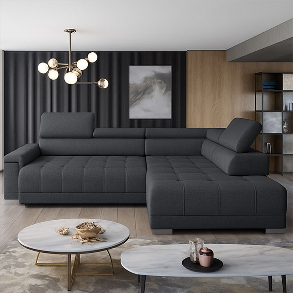 CAMPO (L) corner sofabed (right chaise longue) with electric seat in anthracite fabric