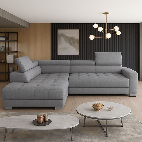 CAMPO (L) corner sofabed (left chaise longue) with electric recliner seat and gray fabric
