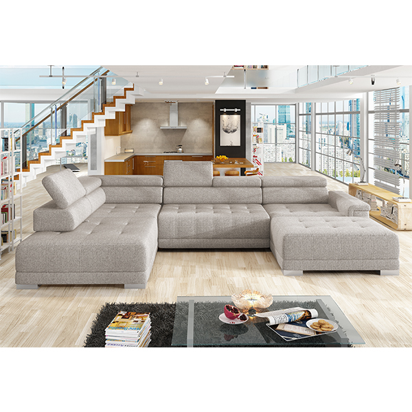 CAMPO (XL) corner sofabed (left chaise longue) with electric seat in cream fabric