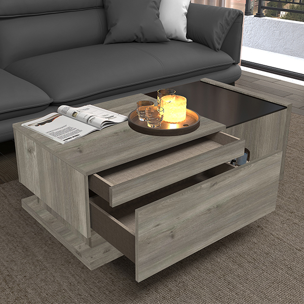 CLARA COFFEE TABLE IN GRAY MELAMINE AND HIDDEN DRAWER