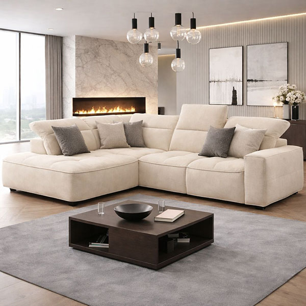COLOMBO (L) corner sofa (left chaise longue) and electric recliners in beige fabric