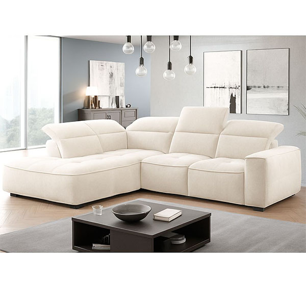 COLOMBO (L) corner sofa (left chaise longue) with storage and electric recliners in cream fabric