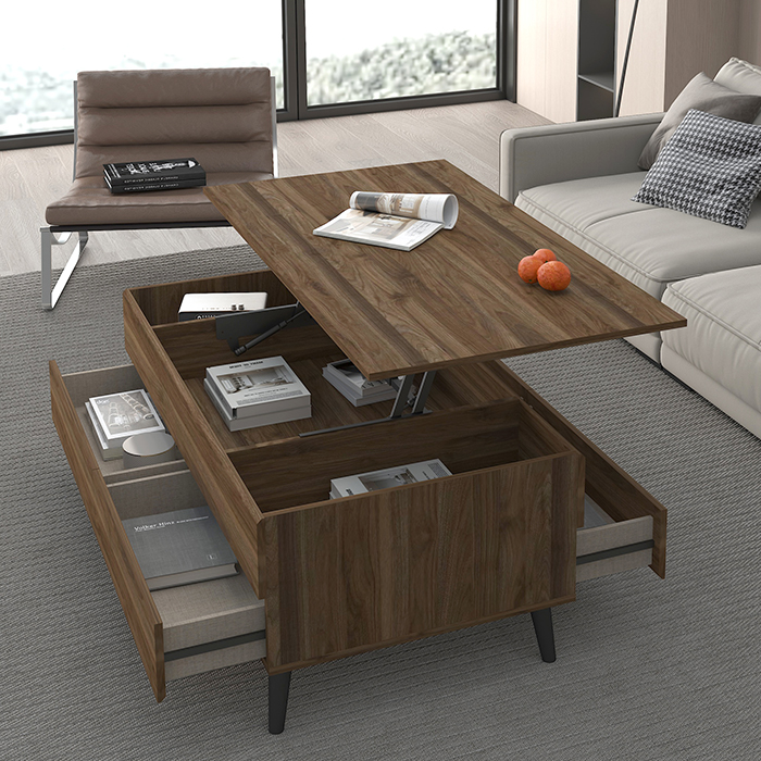 DOROTHY COFFEE TABLE WITH MECHANISM IN WALNUT MELAMINE (4 DRAWERS)