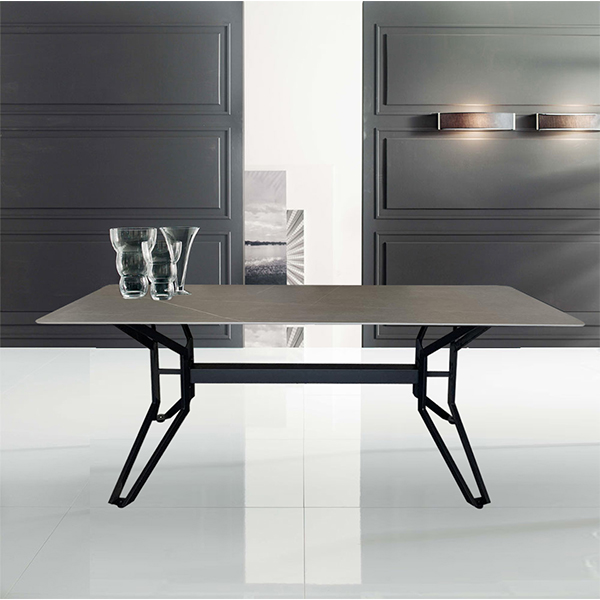 FORMOZIA TABLE 200x100cm IN GRAY MATT CERAMIC AND GOLDEN STAINLESS STEEL BASE