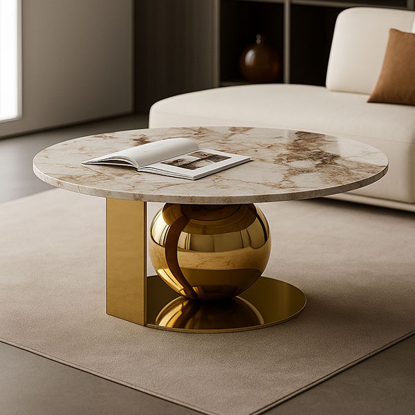 ELENA coffee table in white-brown gloss ceramic and golden base
