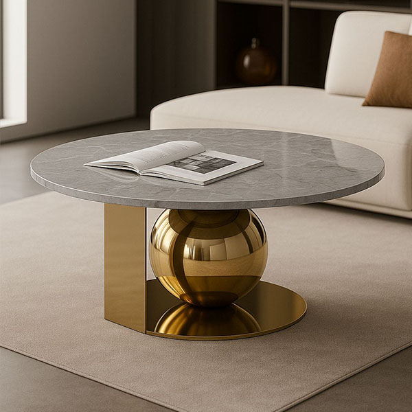ELENA COFFEE TABLE D90cm IN GRAY GLOSS CERAMIC AND GOLD BASE