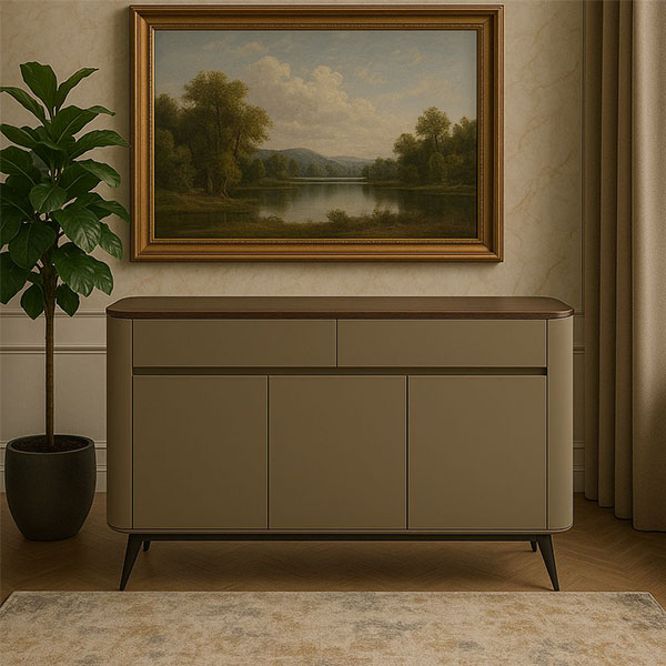 ERICA BUFFET GRAY GLOSS CERAMIC, CHAMPAGNE BODY AND BLACK LEGS