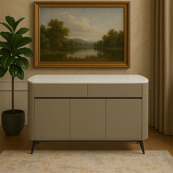 ERICA BUFFET IN WHITE GLOSS CERAMIC, GRAY BODY AND BLACK BASE