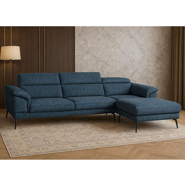 EVGENIA sofa and footstool in blue teflon fabric