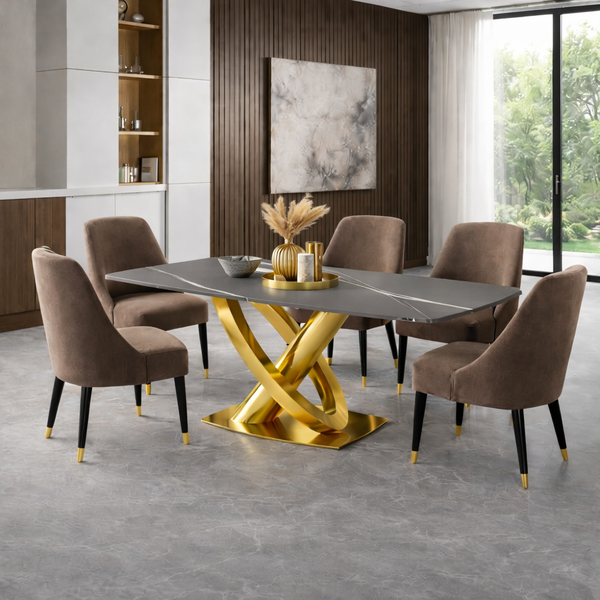 FORMOZIA table in gray matt ceramic and gold stainless steel base
