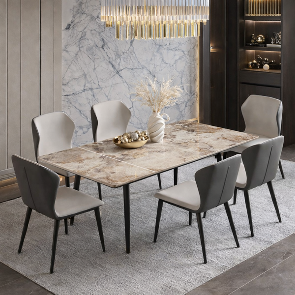 JAMES extendable table in white-brown gloss ceramic and black matt base