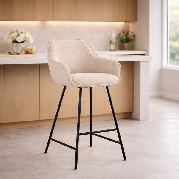 KAYLA bar stool in beige teflon fabric and black base