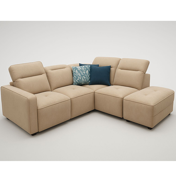KERKIRA CORNER SOFA AND FOOTSTOOL IN BEIGE TEFLON FABRIC