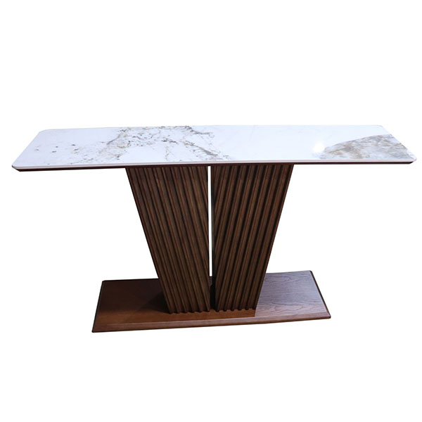 KEVIN console in white-brown gloss ceramic and gray wooden base