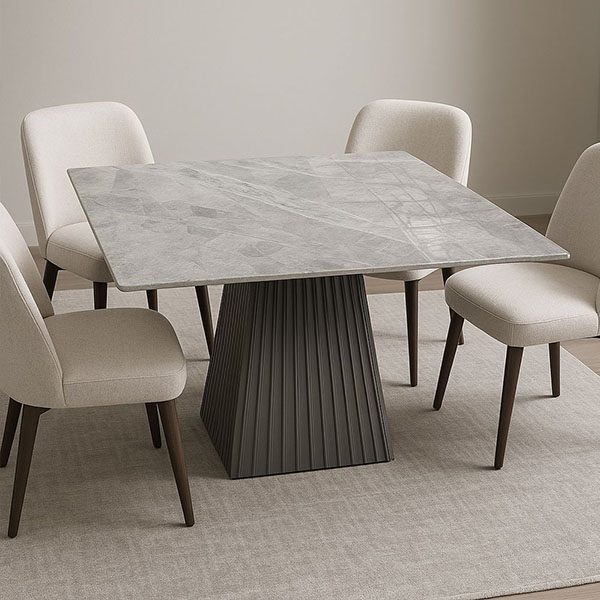 KEVIN table 150x150cm in gray gloss ceramic and gray wood color base