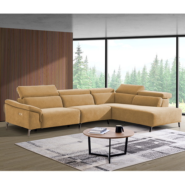 LISA corner right sofa in light brown teflon fabric with electric recliner seat