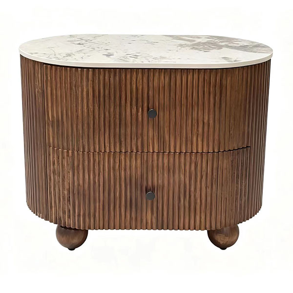 LITSA bedside table in white-brown gloss ceramic and mdf walnut base wood color