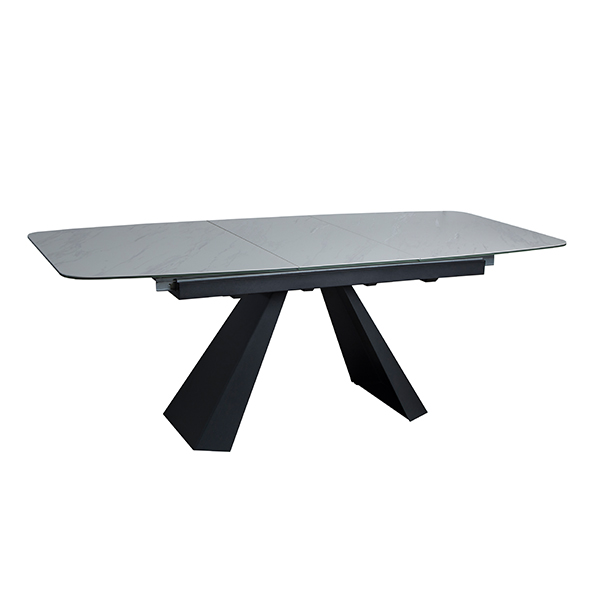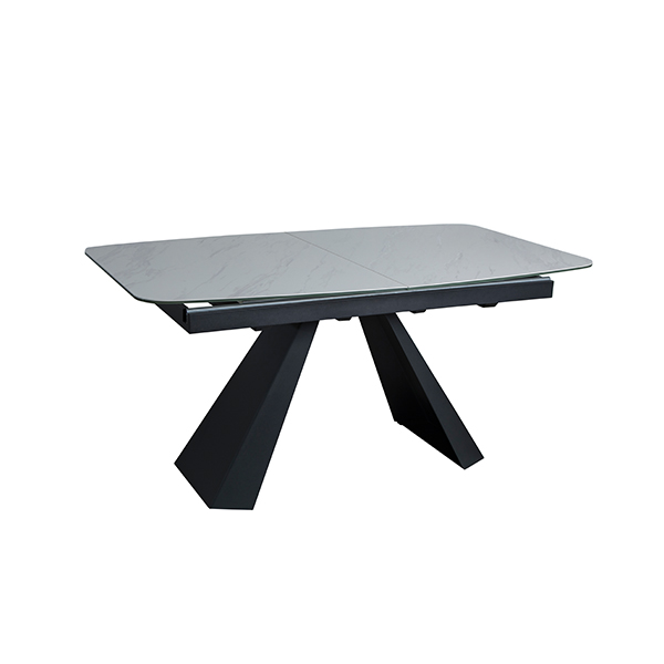 LUCY extendable table in white ceramic, tempered glass and black metal base