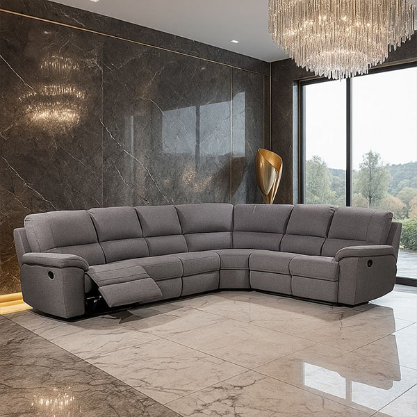 MARGARET CORNER SOFA WITH RECLINERS IN GRAY TEFLON FABRIC