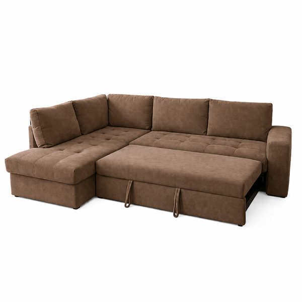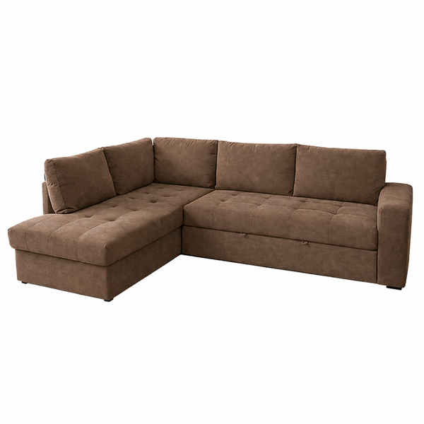 MARKELLA CORNER-SOFABED LEFT CHAISE LONGUE IN BROWN TEFLON FABRIC