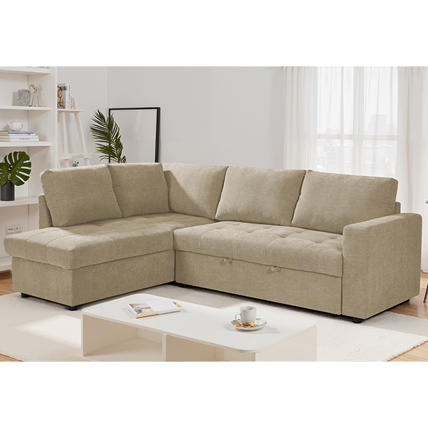 MARKELLA corner sofabed (left chaise longue) in beige teflon fabric