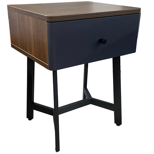MARTHA BEDSIDE IN WALNUT, GRAY DRAWER AND MATT BLACK STEEL BASE