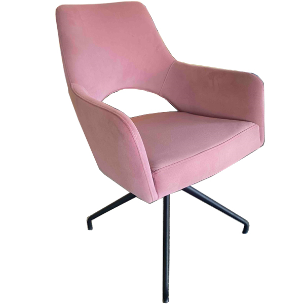 MARY CHAIR IN PINK TEFLON FABRIC WITH ROTATING SEAT AND BLACK MATT BASE