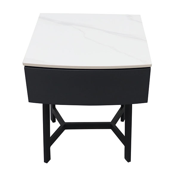 MELISSA BEDSIDE TABLE IN WHITE MATT SINTERED STONE, BLACK MATT BASE AND GRAY DRAWER