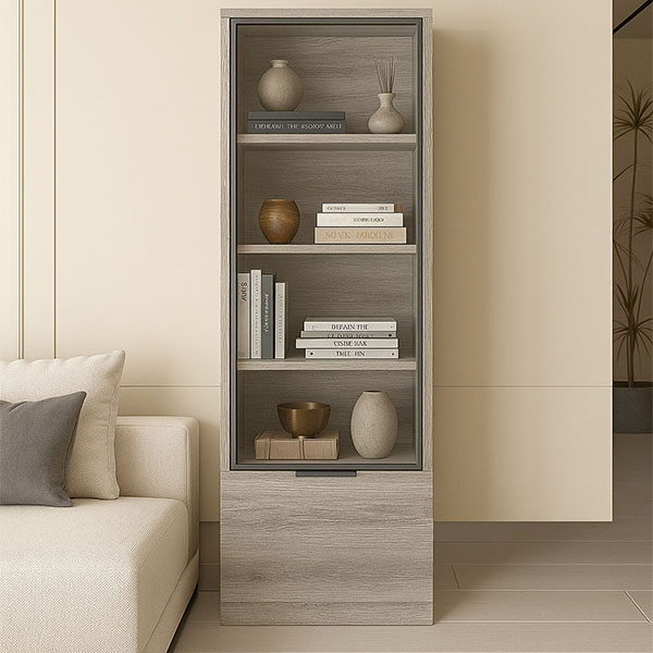 MORGAN CABINET 55cm WITH LIGHT IN GRAY MELAMINE AND GLASS DOORS