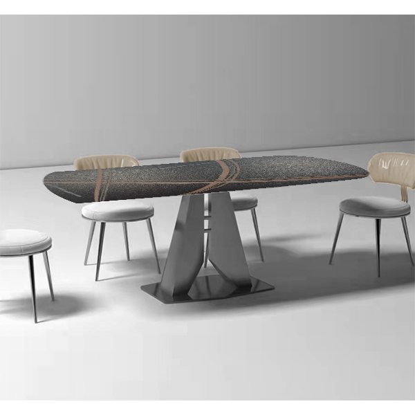 NICO TABLE 180x90cm IN BLACK-ORANGE LINES MATT CERAMIC AND GRAY STAINLESS STEEL
