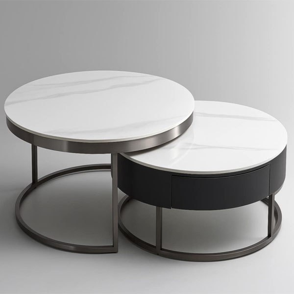 NIKI coffee tables in gray gloss ceramic and gray stainless steel base (2pcs)