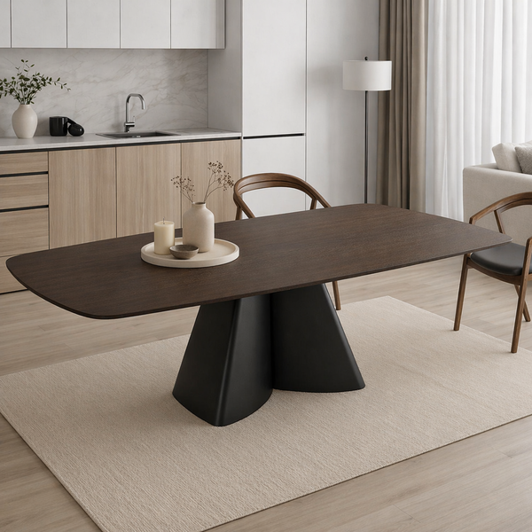 ROME table 200x105cm in walnut matt ceramic and matt black base