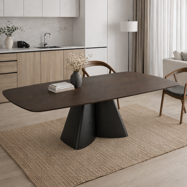 ROME table 220x105cm in walnut matt ceramic and matt black base