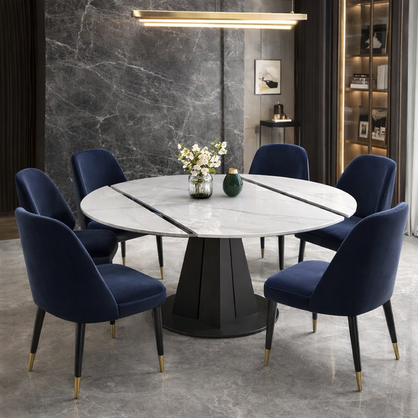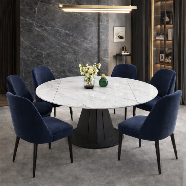 SAMANTHA extendable table in white gloss ceramic and black matt base