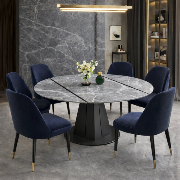 SAMANTHA extendable table in gray gloss ceramic and black matt base