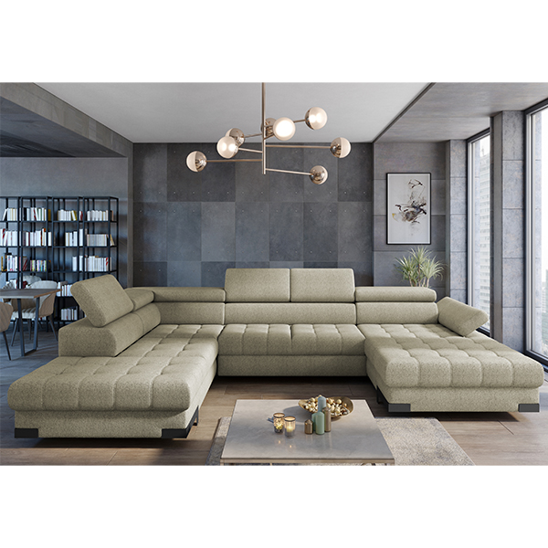 SELVA (XL) corner sofabed (left chaise longue) in cream fabric