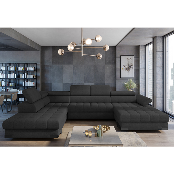 SELVA (XL) corner sofabed (left chaise longue) in gray fabric