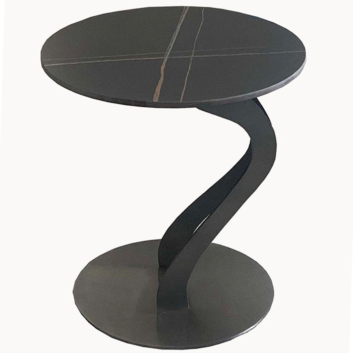 SEVILLE side table in black ceramic with yellow and white lines and gray stainless steel base