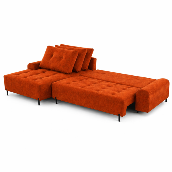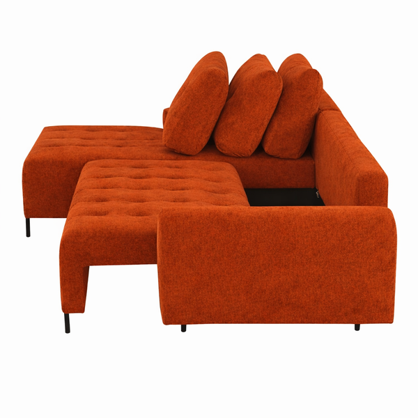 SHANNA corner - sofabed with storage (left chaise longue) in orange teflon fabric