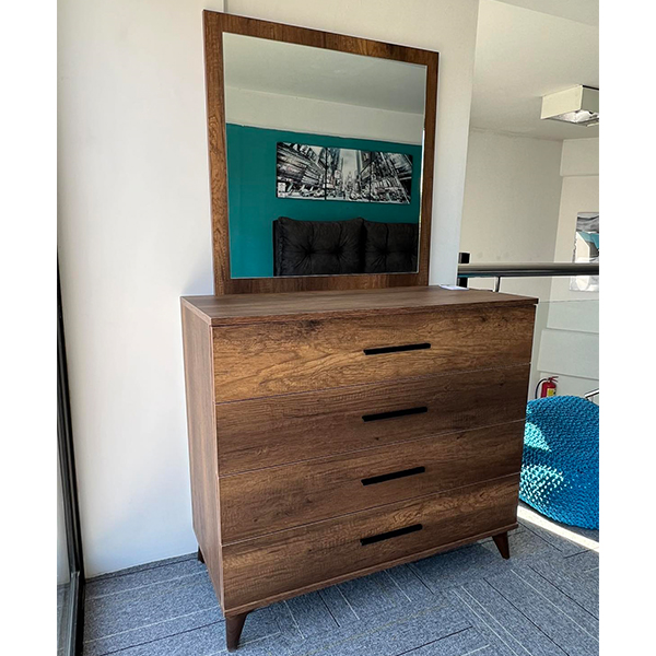 SIENNA CHEST WITH MIRROR IN CEMENT AND ALASKA OAK MELAMINE