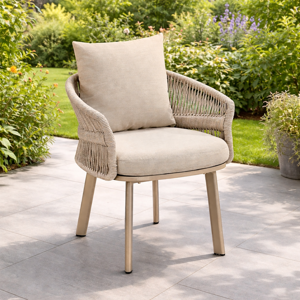 SUMMER OUTDOOR CHAIR IN CHAMPAGNE ALUMINIUM, BEIGE TEXTILENE AND BEIGE ROPE
