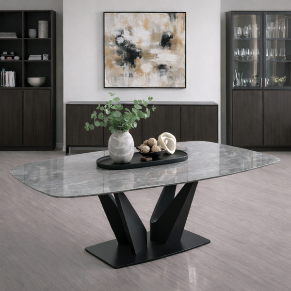 UDINE table 180x90cm in gray gloss ceramic and matt black base