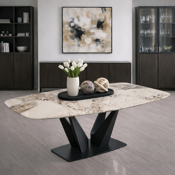UDINE table 180x90cm in gray gloss ceramic and matt black base