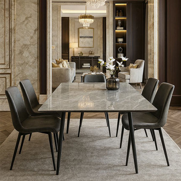ALESANDRA τραπέζι 180x90cm σε γκρίζο γυαλιστερό κεραμικό και ματ μαύρη βάση